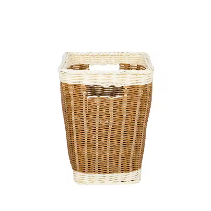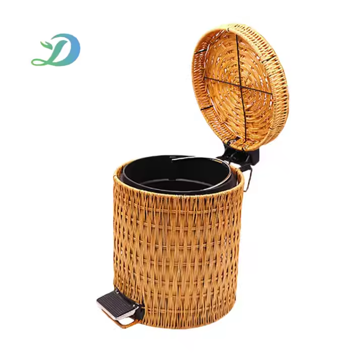 Wholesale Modern Handwoven Trash Can Hotel Household Durable Pedal Rattan Trash Can