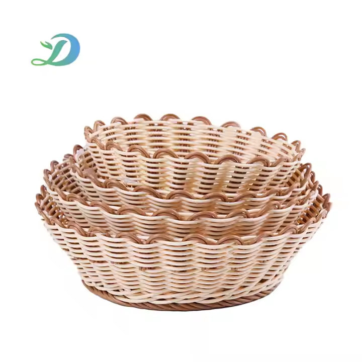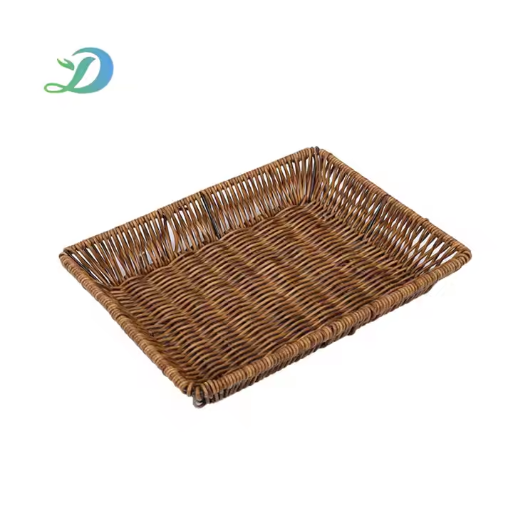 Handmade PP Rattan Bread Basket Hotel Restaurant Fruit Basket Artificial Rattan Basket