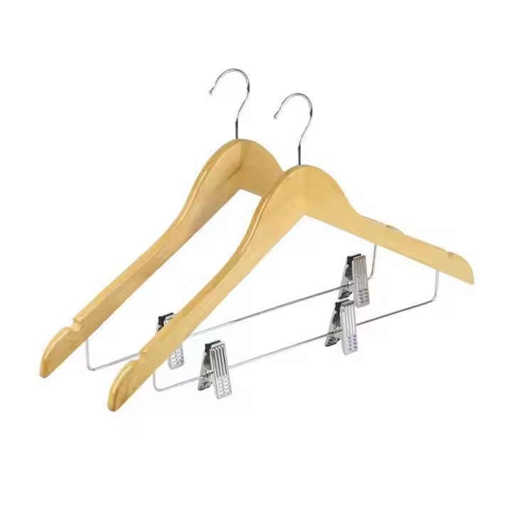 Anti Theft Hotel Guestroom Solid Wood Drying Rack Low-priced Wooden Skirt hanger with B clip